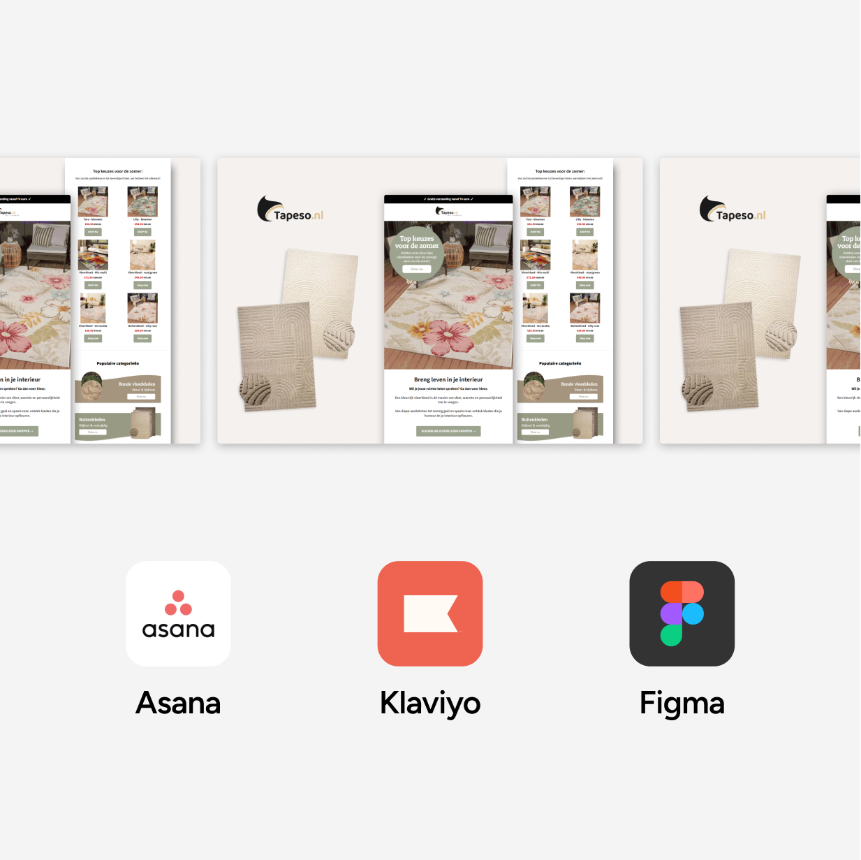 Tapeso werkte al met e-mail, maar miste structuur en schaalbaarheid. Wij namen hun Klaviyo volledig uit handen en bouwden geautomatiseerde flows, afgestemd op vijf verschillende markten. Het resultaat: 20% van de totale omzet komt nu uit e-mail.